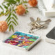 Design de arte colorida, elegante e vibrante com dançarinos de carnaval românticos: Belas dançarinas balneares, linda loira com figurinos cintilantes e empinados está dançando com um jovem Harlequin. Pintura aquosa em rosa claro, fúcsia, verde, vermelho, azul, cores amarelas, faíscas douradas inspiradas na Comédia de Arte (Commedia dell'arte) e no Carnaval de Veneza. É também um belo presente para o natal, feriado, ocasiões especiais, festas de aniversário, bola de mascarada do ano novo, Dia de os namorados.