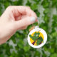 Chaveiro com ilustração da cabeça de um pequeno dragão voador verde giro, em círculo amarelo, fantasia fofa / design de conto de fadas para crianças por Maxi Harmony