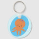 Um polvo de desenho laranja giro. Cadeias de animais bebês. Fundo azul. Ideia de presente para crianças.