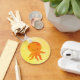 Um polvo de desenho laranja giro. Versão pintada de polvo em fundo angustiado. Cadeias de chave personalizadas. Ideia de presente para crianças.