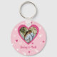 Este chaveiro doce tem um padrão de corações em tons de rosa. Você pode personalizar a foto e os nomes. É um ótimo presente para o Dia dos Namorados, ou um presente ou lembrança para um chá de noiva ou casamento.
