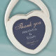 Casamento Azul Escuro Simples Elegante Obrigado chaveiro. Este chaveiro elegante em forma de coração é um favor de casamento excelente para seus convidados. Fundo azul escuro com texto em um roteiro moderno. Você pode personalizar facilmente todo o texto - personalizá-lo com o nome da noiva, o nome do noivo, a data do casamento e outro texto.