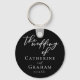 Simplesmente chic e na moda, este favor de casamento no inverno minimalista apresenta uma elegante tipografia cursiva para o seu evento moderno. Imprima seus hóspedes com ousadia noturna de casamento com um simples roteiro branco em um presente de manejo preto de chaveiro.