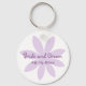 Personalize o Chaveiro de Casamento da Flor Roxinha com os nomes pessoais da noiva e do noivo e a data específica da cerimônia de casamento para criar pequenos presentes para as damas de honra ou as empregadas de noiva. Esta bonito cadeia de chaves de casamento florais apresenta uma flor de margarida roxa leve com um fundo branco.