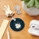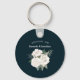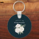 Chaveiro de Casamento de Rosas Marinhos Azuis e Brancas com escrevendo branco sobre um fundo azul marinho clássico com rosas brancas, essas chaveiros quic podem ser personalizadas com seus nomes. O toque perfeito para casamentos, chás de panela, chás de fraldas, graduações e aniversários. Projetado pela RevivaDesigns