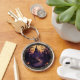 Chaveiro de Halloween Premium de um castelo de Halloween com morcegos, árvores assustadoras, abóboras e cercadas por um anel de teias de aranha.