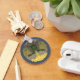 Encontrado em seu caverno oceano subterrâneo, um dragão verde de olhos vermelhos lança fogo nesta ilustração original de fantasia de Richard H. Fay.