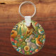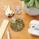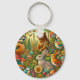 Ilustração encantadora com urso adorável, coelhos e pássaros em um cenário florestal vibrante, cercado por flores coloridas e fungos, criando uma atmosfera quente e encantadora.