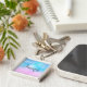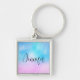 Chaveiro personalizado com fundo caprichoso. Um esquema de cores cor rosa e azul pastel. Pequenas estrelas brancas espalhadas ao redor. Design Whimsical e mágico.