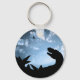 Um dinossauro de Allosaurus olha para um céu azul brilhante como uma mosca de pterossauro acima. Este design pode ser personalizado adicionando texto ou imagens pessoais!