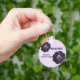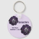 Este chaveiro de manutenção de chá de fraldas apresenta flores pintadas roxas. As flores exibem tons de roxo e todo o design é colocado sobre um fundo roxo claro. Todo o texto e a cor do plano de fundo podem ser facilmente personalizados.
