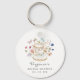 Deixe seu dia especial florescer com este porta-chaves de Chá de Noiva! Este design apresenta belíssimas flores em aquarela pintadas à mão em tons de roxo profundo, azul poeirento e rosa desbotado com folhagens em verde sálvia. Se você está organizando uma festa no jardim ou uma reunião íntima e aconchegante, este lindo design trará um toque especial de charme ao seu evento. Encontre produtos coordenados na festa de Chá de Noiva de Flores Silvestres em Aquarela.