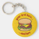 Ilustração de desenho animado Cheeseburger em fundo de comida rápida e uniforme amarelo. Dois campos de texto personalizados em círculo.