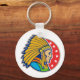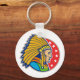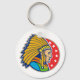 Um design maravilhoso de um chefe índio americano. Este design apresenta apenas a cabeça em cheio, um endereço principal e parece muito legal. O chefe está em um fundo vermelho que tem alguns começos nele. Um design excelente de um chefe índio que parece excelente neste chaveiro. Perfeito para si mesmo ou como presente