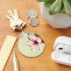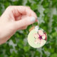 Vista de perto da delicada flor de cereja. Uma flor pastel rosa com pétalas redondas macios. O fundo é um verde limão pálido.