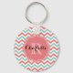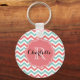 Chaveiro Chevron Coral e Aqua Nome Personalizado