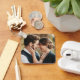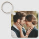 Um acessório sentimental e na moda para carregar da sua história de amor onde quer que você vá. Este chaveiro apresenta o voto escrito à mão ou uma mensagem significativa na tipografia moderna do script, juntamente com um espaço personalizável para uma foto do casal.