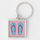 Uma ilustração de um par de chinelos de praia cor-de-rosa e azuis. É verão! O vamos faz uma pausa e diverte-te debaixo do sol. Você não está animado em preparar suas coisas para as férias? Não esqueça seus chinelos.