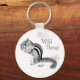 Um desenho de caneta e tinta de um pedaço enfeita esse chaveiro 'Wild Thing!'!