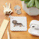 A ilustração original de um desenho animado de cabelo comprido e bonito, chocolate castanho e casaco de maçã bronzeada, cão da raça Dachshund. Há também uma área de texto personalizável para um nome no outro lado. O fundo tem um padrão de pegadas de cinza.