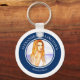 Com base na minha pintura em aquarela de menina na praia com cabelos loiros longos com círculo azul-marinho no lado externo e textos na parte superior e inferior, design feminino lindo. Personalize-o no Zazzle com seu próprio texto para um design personalizado. Confira minha coleção para itens correspondentes!