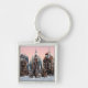 Renderização digital em 3D de uma cidade futurista de ficção científica em um fundo cor-de-rosa