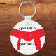 Personalize o Chaveiro do Cinturão Vermelho de Artes Marciais com seu nome, equipe, nome de dojang ou ginásio ou arte marcial específica e data para comemorar a realização de um teste de promoção de classificação de cinta em taekwondo, karate, kung fu, judo ou ju jitsu. Use para guardar suas chaves ou pendurar sua bolsa de ginástica para facilitar a identificação. Este anel de chave personalizado apresenta uma fotografia digitalmente melhorada de uma cinta vermelha de artes marciais atada num nó.