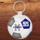 Esta escola colorido chaveiro de futebol para meninas ou meninos apresenta uma bola de futebol tradicional em estilo na qual você pode facilmente personalizar o nome do jogador, o monograma ou a letra de varsidade e o número de camisa - os painéis normalmente pretos da bola de futebol são azuis e cinzas coloridos - por katz_d_zynes