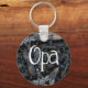 Opa chaveiro para seu avô holandês ou alemão. O fundo é um padrão de abstrato de arte de cinzas, azuis, castanho e "Opa" está escrito em branco. Um presente pensado para Dia de os pais, novo avô, aniversário.