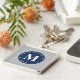 Fundo de padrão de bolinhas branca, cúbica, de tendências, cinza e branca com um modelo de rótulo personalizado azul marinho com borda pontilhada.