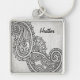 Mantenha suas chaves à mão com este Chaveiro Mehndi Motif com um intrincado design de hena indiana em um fundo de olhar aflita de cinza. Adicione texto personalizado, como seu nome ou monograma, a esta design étnica para lhe dar um toque pessoal.