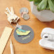 Este chaveiro apresenta uma ilustração de uma bota de caminhada em amarelo pálido e azul aqua contra um fundo de cinza e está pronto para ser personalizado com um nome abaixo em letras amarelas correspondentes.