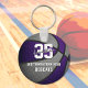 Este legal chaveiro do tema de basquete apresenta a imagem de uma bola de basquete realista com painéis coloridos roxos e cinzas alternados - facilmente personalizados com o nome da escola, o nome do mascote e o nome do jogador & número de camisa - por katz_d_zynes