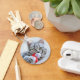 Uma chaveiro com uma fotografia de Natal fofa de uma cinza de gato a morder um chapéu vermelho de santa. Suas grandes patas fofinhas tornam esta foto muito encantadora.