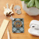 Crachá da crista de Clan Bell rodeado por uma correia e fivela sobre fundo de tartã. Texto personalizado de ambos os lados.