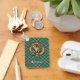 Crachá da crista Clan MacFarlane rodeado por uma correia e fivela sobre o antigo fundo de tartã de caça. Texto personalizado de ambos os lados.