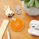 Um design baseado em uma foto de uma laranja Clementine fatiada.