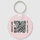 Apresentando o chaveiro de código QR para empresas cor-de-rosa esbranquiçado, com um logotipo simples e cor-de-rosa que contrasta elegantemente com um fundo branco. Este chaveiro oferece uma aparência limpa e na moda, fazer-o um excelente promocional para pequenas empresas. Você pode facilmente editar o design on-line para personalizá-lo com sua identidade de marca, e não há requisitos mínimos de pedido, fornecendo flexibilidade para as necessidades de seu promocional. Além disso, o chaveiro inclui um código QR para fácil acesso ao seu site ou às mídias sociais, o fazer é um acessório prático que mostra a sua marca de forma eficiente! Adicione seu logotipo no formato .png ou .jpg, para que o código QR simplesmente adicione seu URL e ele será criado. Design de Ana Garza/Kardz Studio Designs. Se tiver alguma pergunta, por favor contacte-me através do bate-papo Zazzle.