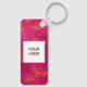Código QR Logotipo comercial, chaveiro profissional, personalizado de lado duplo. Rosa, design simples. Perfeito para a sua empresa. chaveiros promocionais.