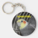 Uma fotografia de um armário de Cockatiel que é brilhante e colorido de um Pássaro de Pet em sua gaiola. Isso é brilhante e colorido em Hutchinson Kansas USA que está em um CHAVEIRO.