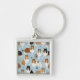 Cães de Collie Rough Cute sentam-se e ficam de pé e rollover com casacos sápidos, tricolores, unidos e brancos com ossos de cão espalhados e padrões de pegadas.