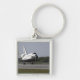 Com a calha de arrasto descontinuada, a descoberta do ônibus espacial pousa na pista 33 no Shuttle Landing Facility no Kennedy Space Center, na Flórida, em destaque com Cape Canaveral.