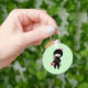 Ninja linda de desenho animado vestida de preto, mas para um arco rosa em cima de sua máscara de cabeça. A espada tradicional japonesa de katana pode ser vista amarrada nas costas dela, é também cor-de-rosa. A garota está segurando uma cesta de compro rosa.