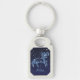 Chaveiro com o símbolo do zodíaco para Aries em azul-prata-suave, sobreposto com as estrelas da constelação, contra um fundo do céu estrelado formando de azul-da-meia-noite profundo a preto.