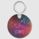 Esta corrente chave é excelente para qualquer Scorpio! Apresenta uma galáxia de aglomerado nebulosa em rosa, azul e laranja. Por cima está a constelação de Escorpião, junto com o texto "Scorpio". O texto pode ser personalizado.