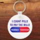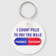 Esta chaveiro exibe o texto "Eu conto comprimidos para pagar as contas." Esta chaveiro humorística é excelente para técnicos de farmácia.