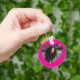 Borda rosa quente em forma de coração para sua foto digital em um chaveiro de dois lados. Alterar a cor de fundo. Carregue sua imagem e crie seu próprio talento. Crie seu próprio botão de amor para Dias de os namorados ou talvez um aniversário de casamento.