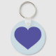 Este chaveiro apresenta um coração azul moldado sobre um fundo azul claro.