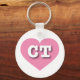 Esta cadeia-chave apresenta um coração legal, cor-de-rosa, contendo as letras maiúsculas, brancas e em negrito CT, a abreviação oficial de Connecticut, o estado de constituição.