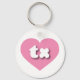 Esta cadeia-chave apresenta um coração cor-de-rosa contendo as letras maiúsculas, brancas, arredondadas tx, uma abreviação lúdica para o Texas, o estado estelar solitário.